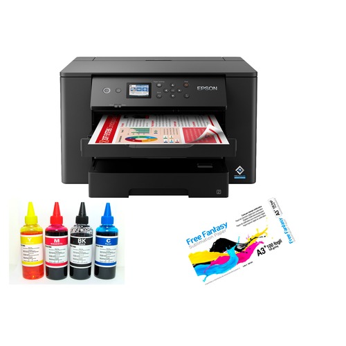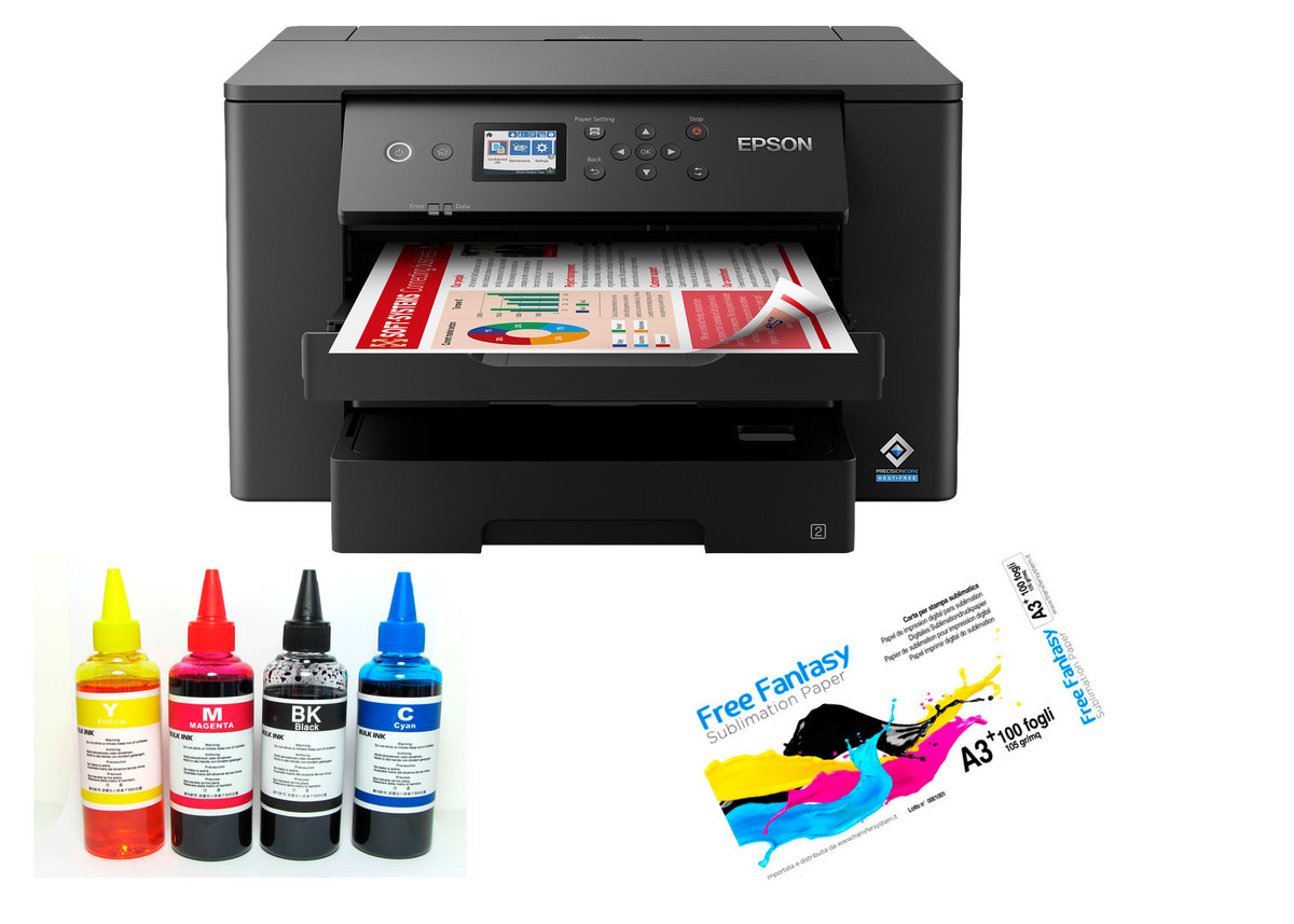 Kit stampante sublimatica Epson WF 7310 completo di cartucce ricaricabili autoresettanti ,4 bulk inchiostro 100 ml. 1 pacco di carta A3 profilo colore e assistenza in accesso remoto